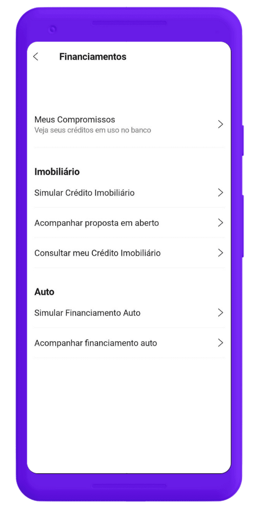 6. Por lá, basta selecionar a opção “Empréstimos e Financiamentos“.