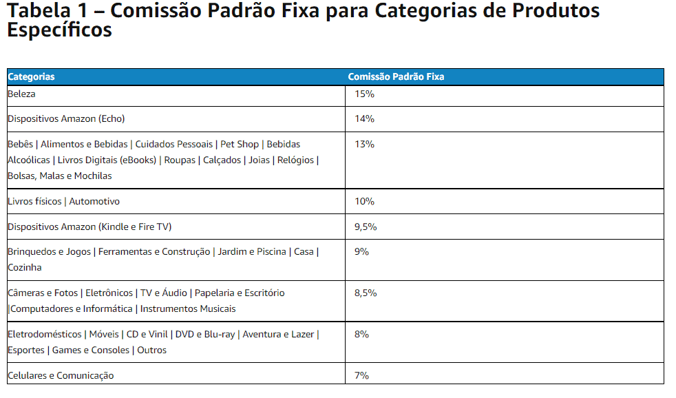 Comissão Padrão: Essa é a comissão comum para todos os produtos.