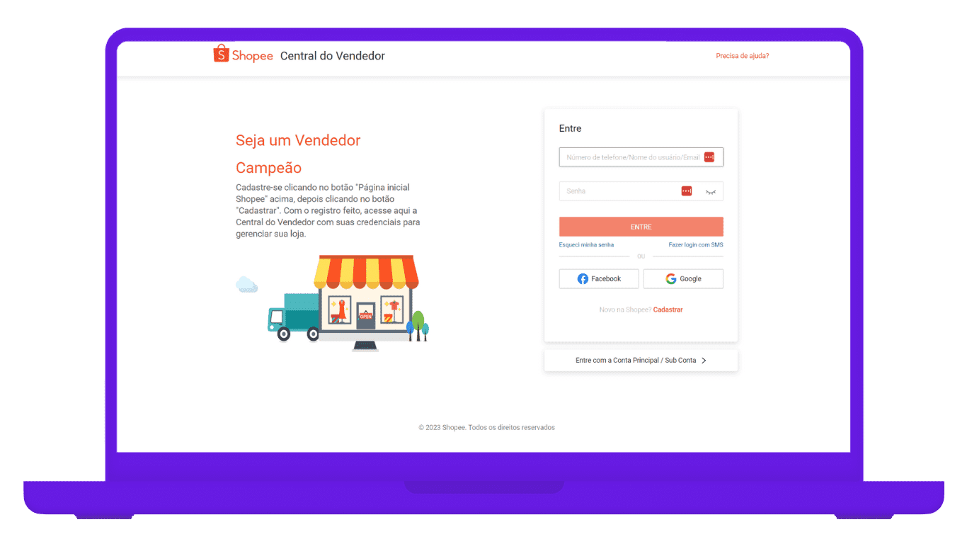 Para se tornar um vendedor da Shopee, o primeiro passo é abrir uma conta de Vendedor no site da marca.