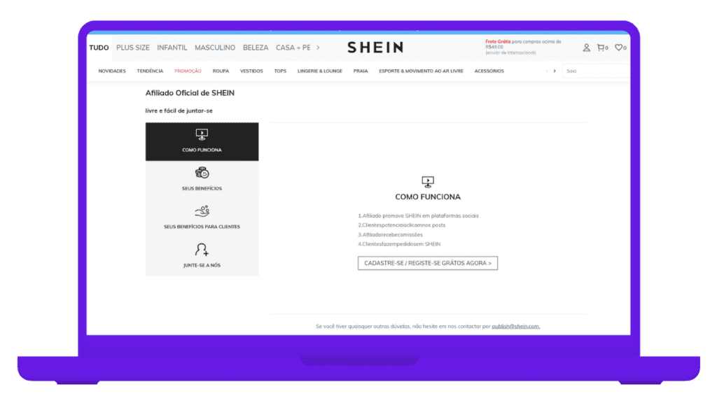Se tornar um afiliado Shein é bem fácil. Confira o passo a passo: