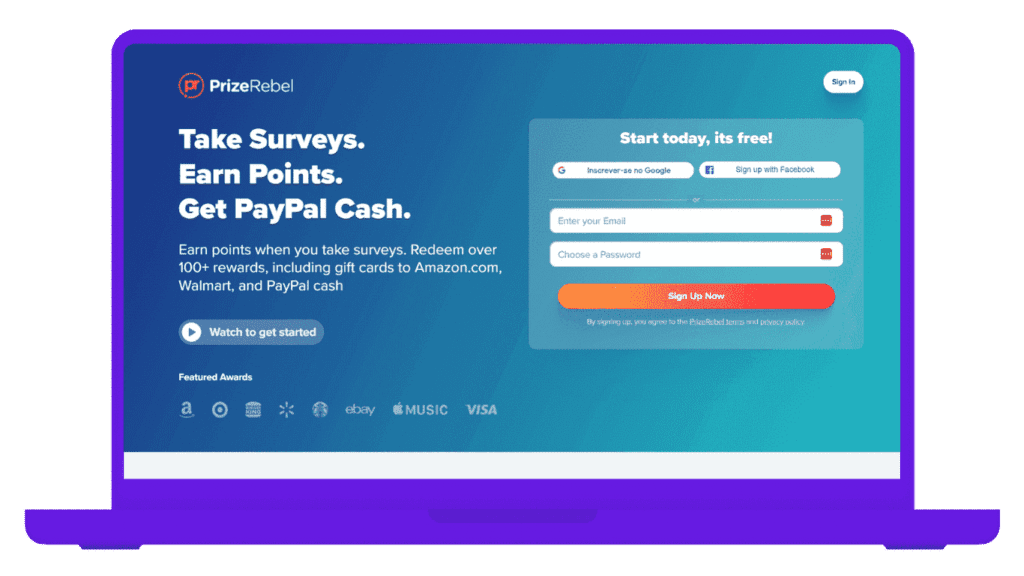 Continue lendo para saber mais informações sobre como ganhar dinheiro com o PrizeRebel.