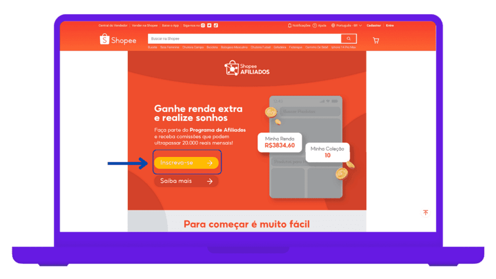 Quer fazer parte do programa de afiliados da Shopee? Então veja um passo a parte de como se inscrever para começar a divulgação: