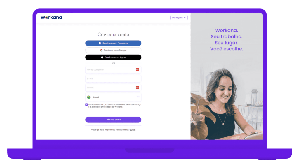 Ao entrar no site da Workana, você precisará escolher entre duas opções: sou um cliente (procuro um talento) ou sou um talento (procuro oportunidades).