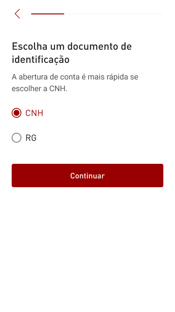 Lembre-se: a abertura da conta é mais rápida quando você opta por utilizar a CNH (Carteira Nacional de Habilitação) como documento de identificação: