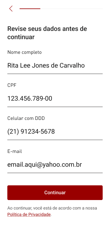 Após o preenchimento, faça a revisão dos dados fornecidos para o cadastro e, caso estejam corretos, clique em continuar: