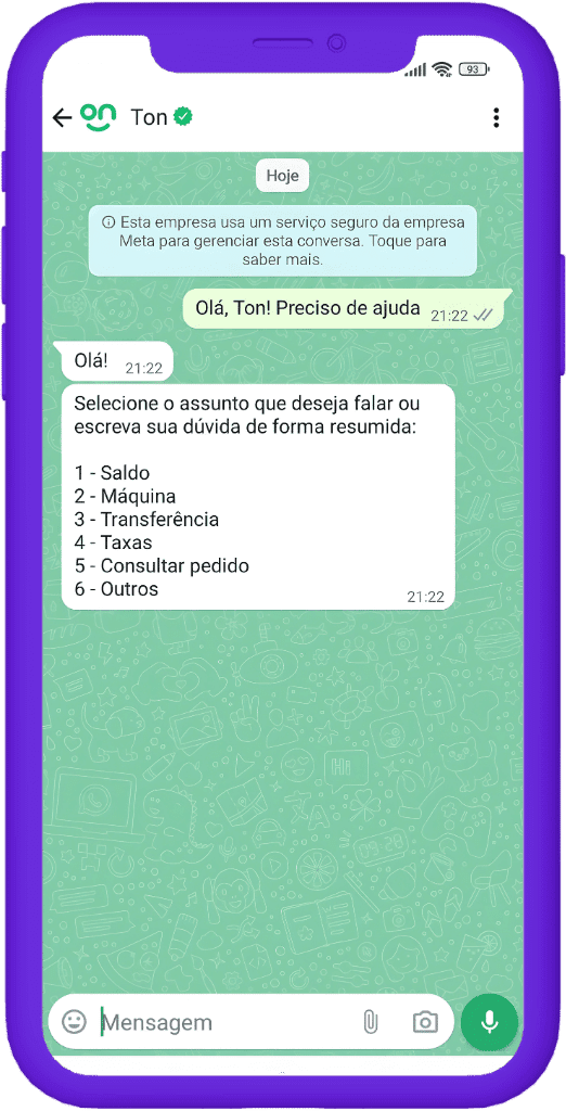 É muito mais prático entrar em contato pelo telefone do WhatsApp Ton. Assim, em poucos minutos é possível conseguir uma resposta para suas necessidades!
