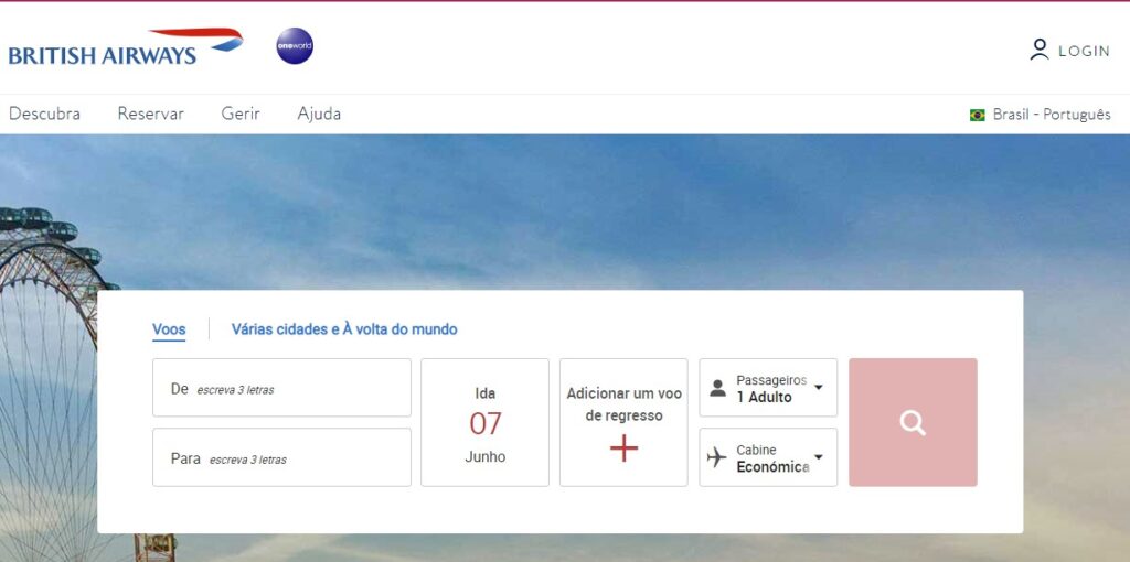 A forma mais comum hoje em dia para comprar passagens da British é através do site oficial da companhia aérea.
