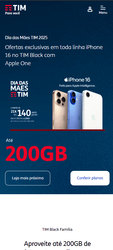 A TIM traz descontos expressivos em smartphones, inclusive, tem condições especiais para a linha iPhone 16. Além disso, oferece bônus de internet de até 200 GB nos planos TIM Black.