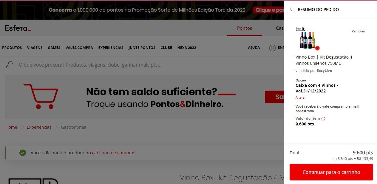 Compra com pontos Esfera