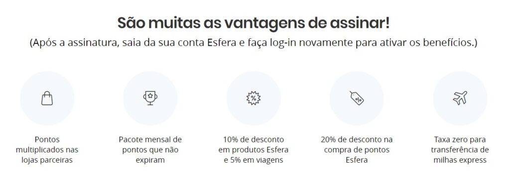 O Clube de pontos Esfera também disponibiliza para os seus assinantes uma categoria especialmente voltada para os viajantes, com isso, todos recebem 5% de desconto no catálogo.
