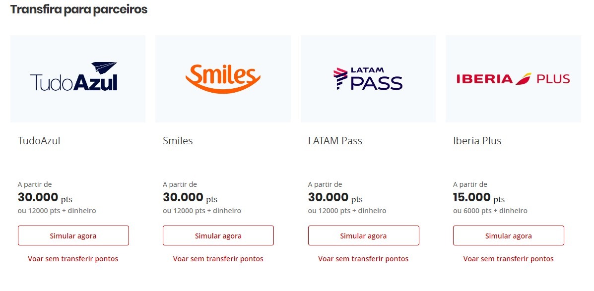 Isenção da taxa de transferência express de pontos aos Programas Parceiros