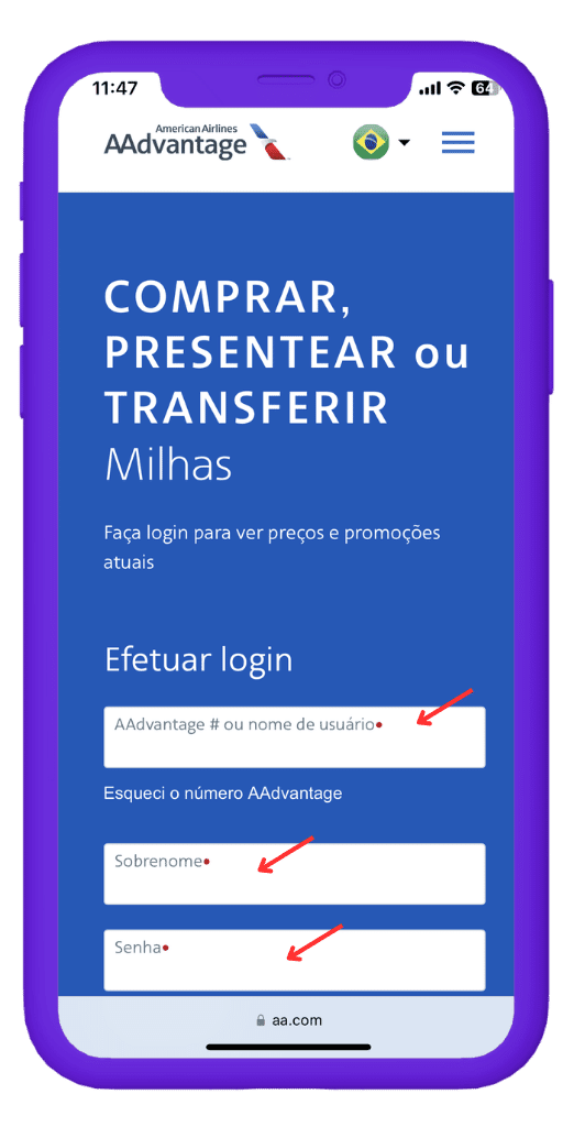 - 2. Depois faça faça o login em sua conta AAdvantage;