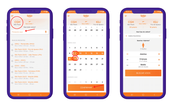 Para comprar as passagens usando milhas na GOL Smiles, siga as instruções abaixo: