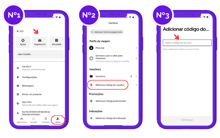 Verifique o seu email que foi cadastrado na Smiles, dentro dele estará disponível o código do voucher, basta ir até o aplicativo Uber, em “Pagamento”, depois em “Adicicionar Código do Voucher”.
