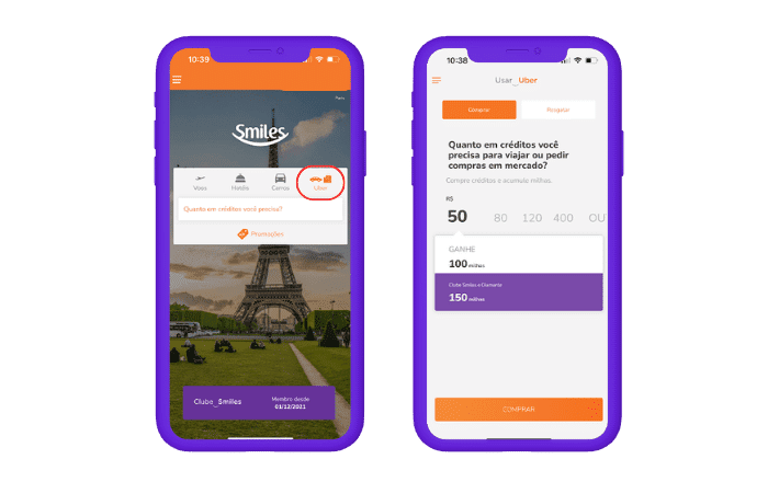 Agora, se você tem um cartão que acumula milhas, você ganha duas vezes, tanto na compra dos créditos da Uber na Smiles, quanto na fatura do seu cartão de crédito. Perfeito, não é mesmo?