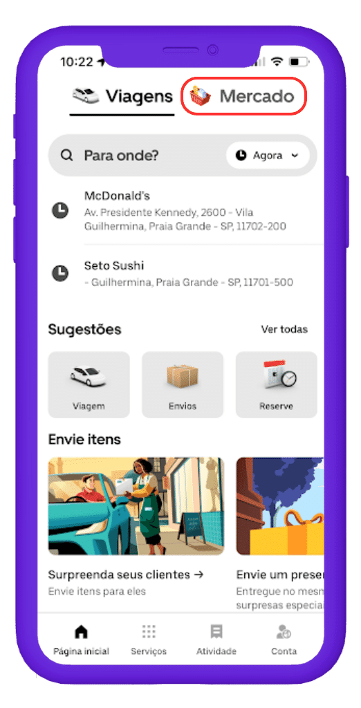 Dica importante: Se não tiver um cartão de crédito cadastrado, a Uber não deixa validar as compras no mercado, mesmo usando o saldo da carteira.