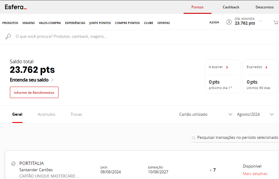Lembramos, que se você tem cartões Santander, a opção de acumular pontos Esfera Santander não se aplica a todos, apenas aos listados pelo banco.