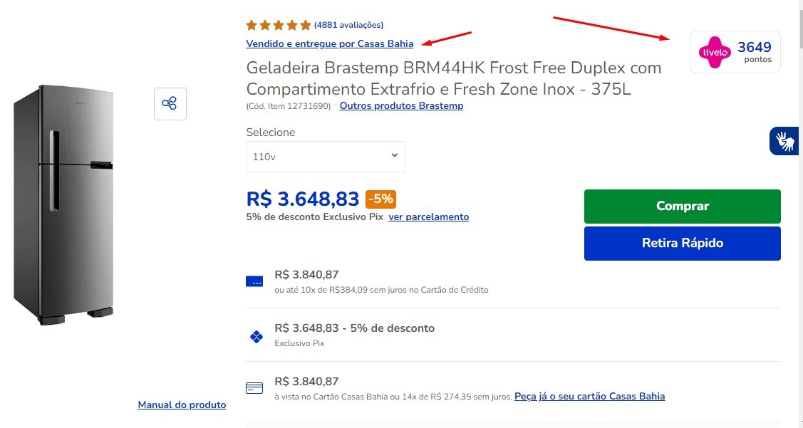 Dentro da Livelo pode estar o mesmo valor do site direto da Casas Bahia, com a diferença que na Livelo você ainda ganha pontos pela parceria.