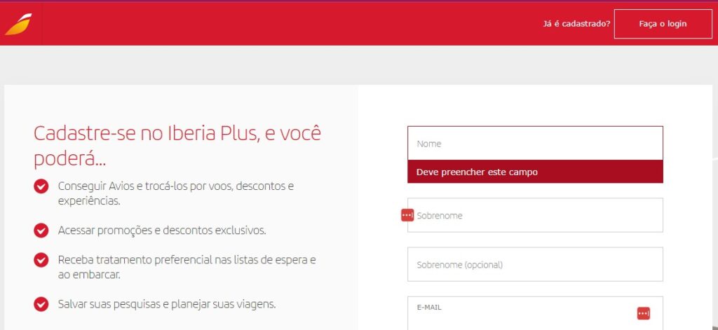 Para fazer parte do programa Iberia Plus basta fazer a inscrição gratuita e a cada voo realizado pela empresa, pontos serão acumulados neste programa.