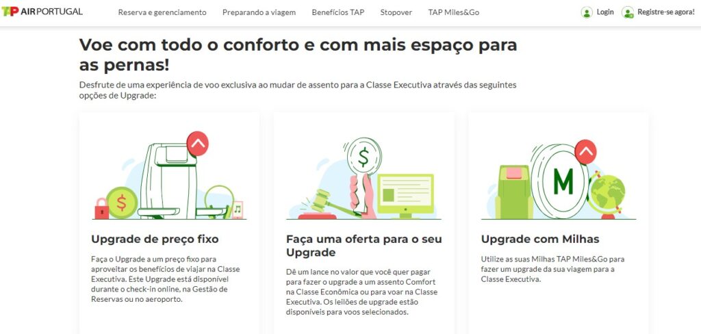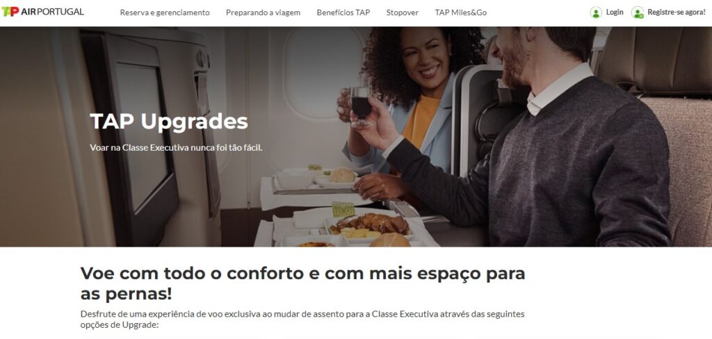 Não podemos deixar de mencionar a vantagem de que a TAP aceita o upgrade de cabine usando as suas próprias milhas.