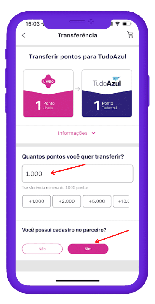 Mas se você preferir transferir na hora, deverá pagar 1.000 pontos pela transferência e pode ocorrer em até 2 horas.