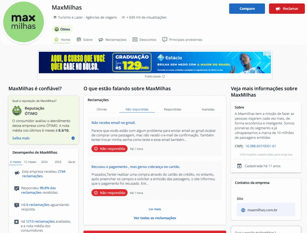 É importante ressaltar que até março de 2025, a Maxmilhas continua com uma excelente avaliação pela plataforma do Reclame Aqui.