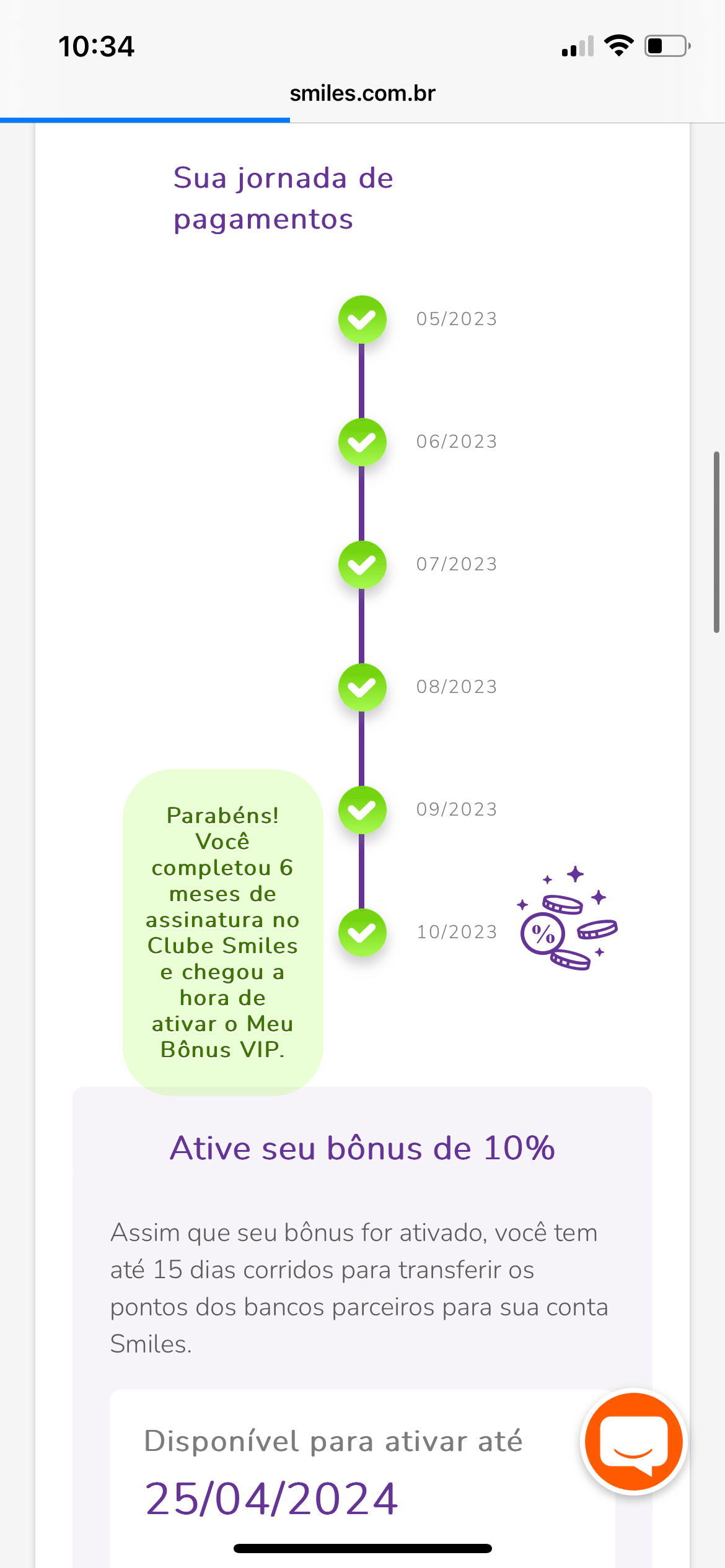 O cálculo do bônus VIP Smiles será feito de acordo com o acúmulo dos últimos seis meses de uso do cartão GOL Smiles.