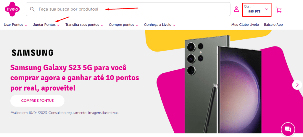 Nesta página você também consegue verificar os produtos em oferta e a quantidade de pontos que os parceiros estão cobrando por eles.