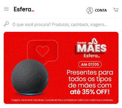 Serviços Esfera: Desconto de até 50% em lojas parceiras; Junte pontos e resgate; Desconto na Fatura; Clube Esfera.