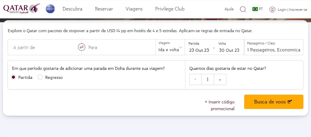 - Pesquise sua Reserva: Comece fazendo a pesquisa da sua reserva de voo com a Qatar Airways. Certifique-se de verificar a elegibilidade do seu voo para um stopover em Doha, pois nem todos os voos podem ser elegíveis.