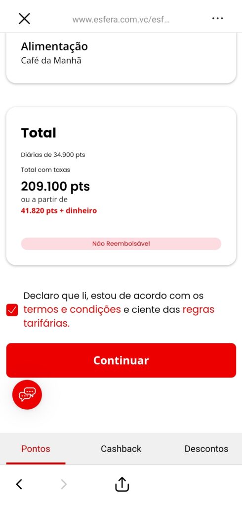 - Complemente o valor de milhas com dinheiro