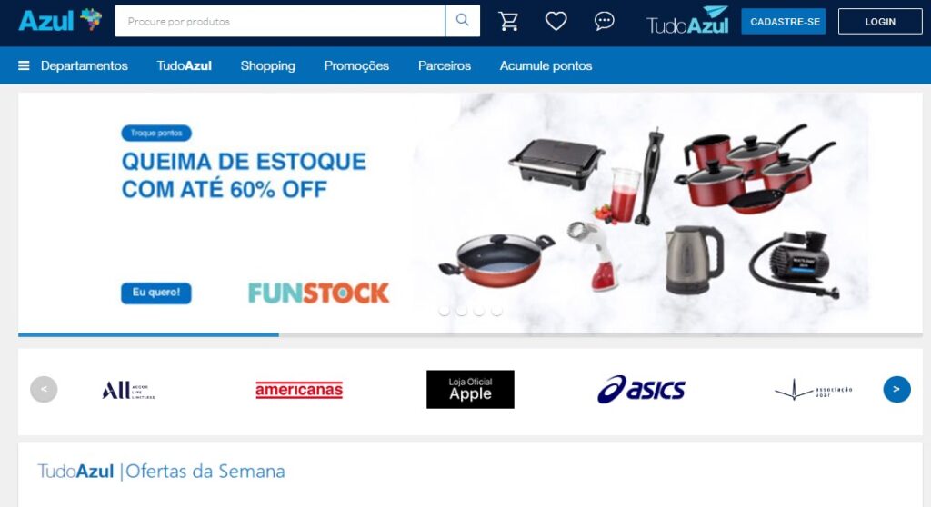 Com o Shopping TudoAzul, é possível acumular pontos e ainda aproveitar vantagens exclusivas em compras proporciona sem precisar e um cartão de crédito que pontua.