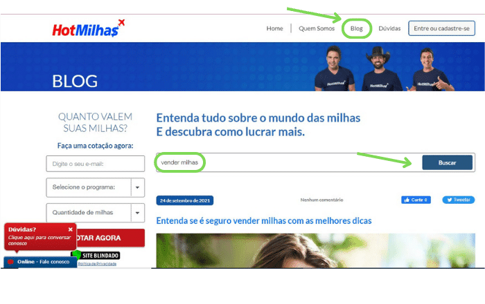 Uma outra alternativa, ainda no site da HotMilhas, para entrar em contato com eles ou simplesmente obter uma resposta para uma dúvida é o Blog.