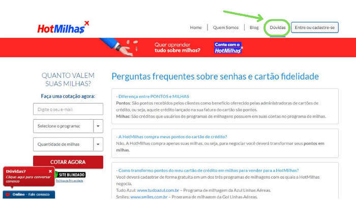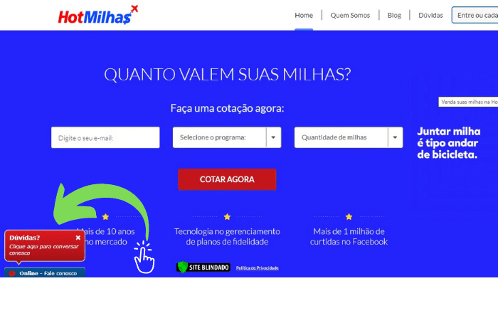 Entre em contato com a HotMilhas pelo Dúvidas?