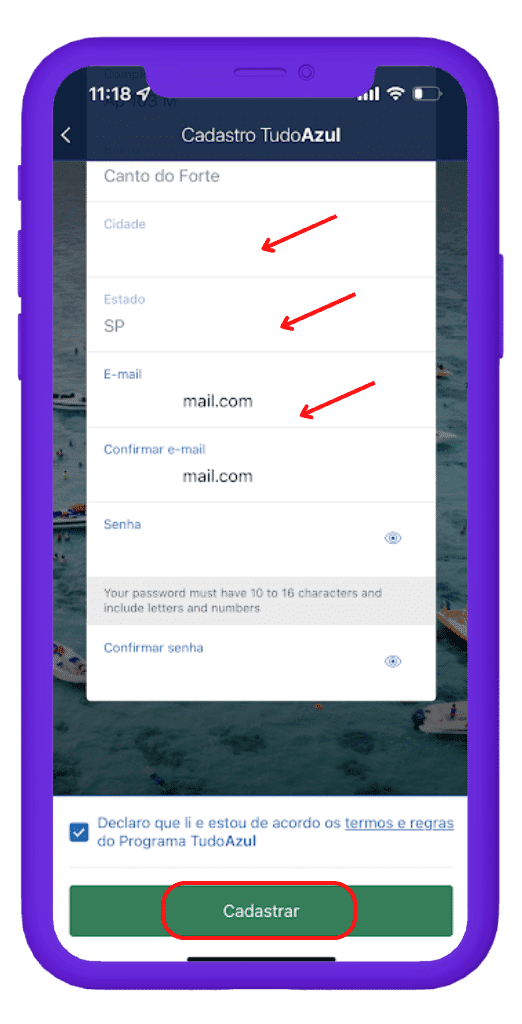 Leia e aceite os Termos e Regras do programa e clique em “Cadastrar”.