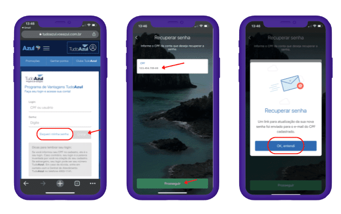 Para saber se tem cadastro no TudoAzul é muito simples, informe seu CPF no campo destinado a essa função e clique em “Esqueci minha senha”.