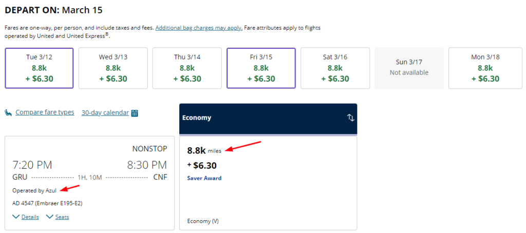 Você vai perceber que todas custam a mesma quantidade de milhas em qualquer data disponível.