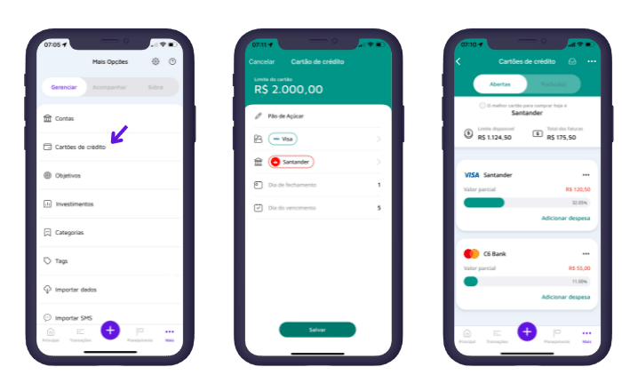 - Gerenciar cartões de crédito;