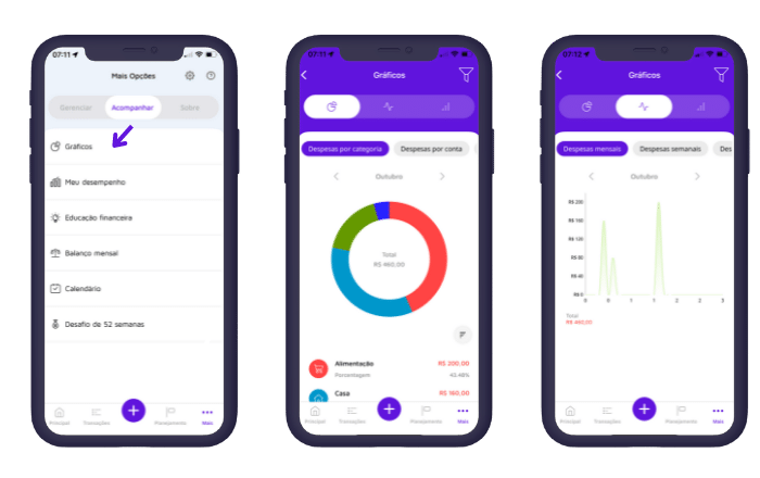 Após fazer os seus registros, é muito importante analisar relatórios e gráficos personalizados que vão te ajudar a entender como otimizar a sua renda.