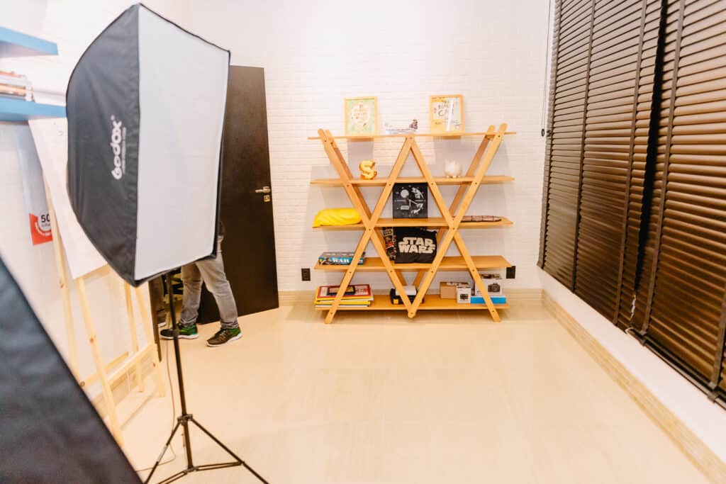 Nesse novo escritório, também criamos uma sala de estúdio, pois tínhamos o plano de aumentar tanto a qualidade quanto a quantidade de conteúdos em vídeo para o canal do Mobills no Youtube.