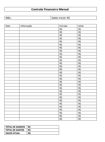 Mas não se preocupe em errar, visto que o mais importante está em começar e ir aperfeiçoando essa sua ferramenta de controle aos poucos.