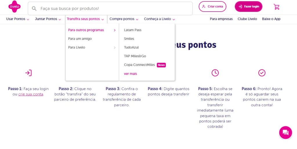 A livelo permite fazer a transferência de pontos do cartão para companhias aéreas até pelo site.