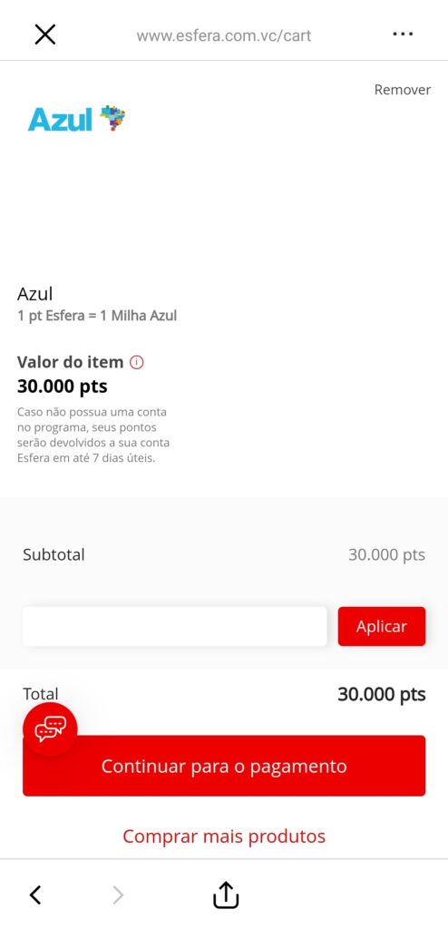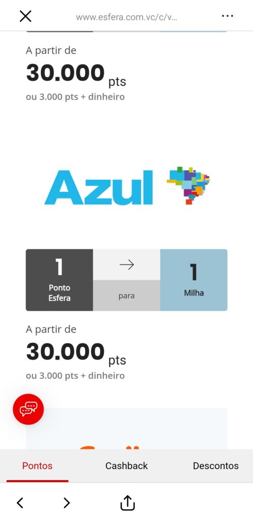 Quanto vale 1.000 pontos Esfera em milhas Azul?