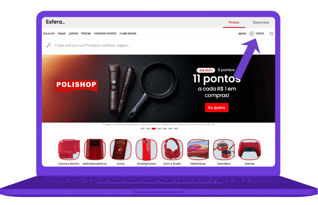Ao criar sua conta, você se torna elegível para acumular pontos em todas as compras nos parceiros Esfera e participar das promoções.