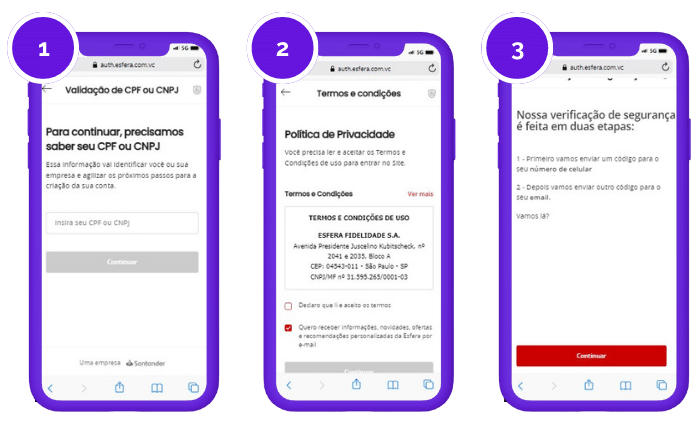 Siga o passo a passo e realize o seu cadastro no Santander Esfera em poucos minutos.