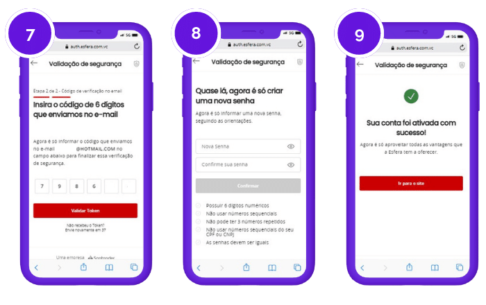 7. Crie uma senha de 6 números e confirme.