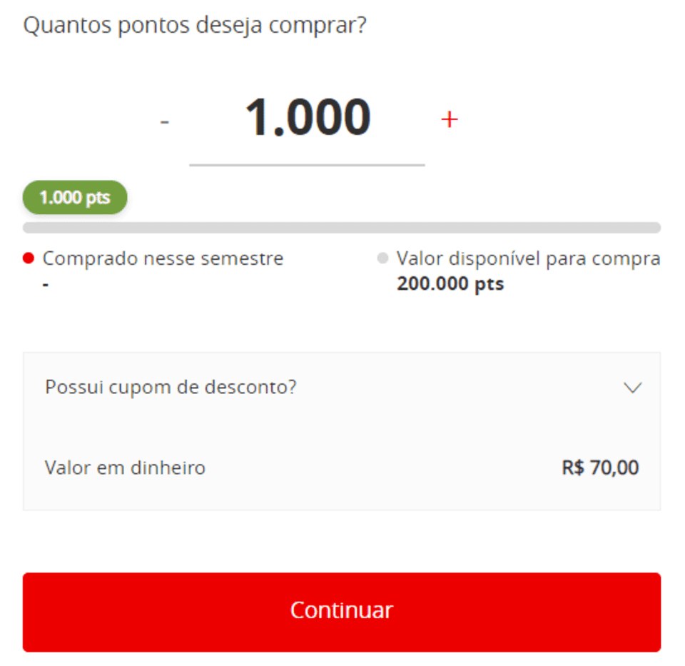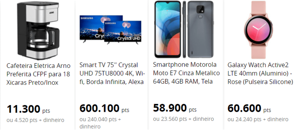 • Pontos&Dinheiro: com a opção Pontos&Dinheiro, é possível usar um valor em dinheiro caso falte pontos suficientes na hora de resgatar uma compra.