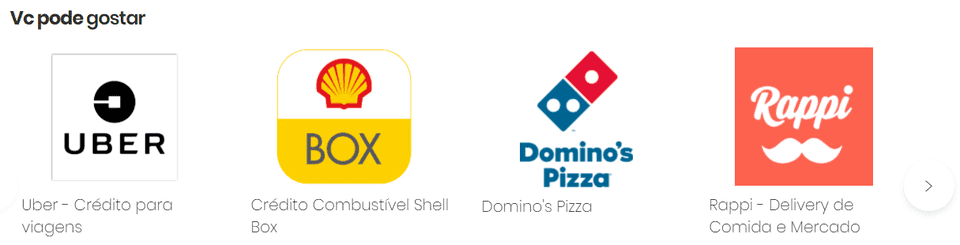 É possível usar seus pontos para resgatar vale-compras/cartão-presente para diversos serviços e empresas: Uber, vacina, jogos online e diversos outros.