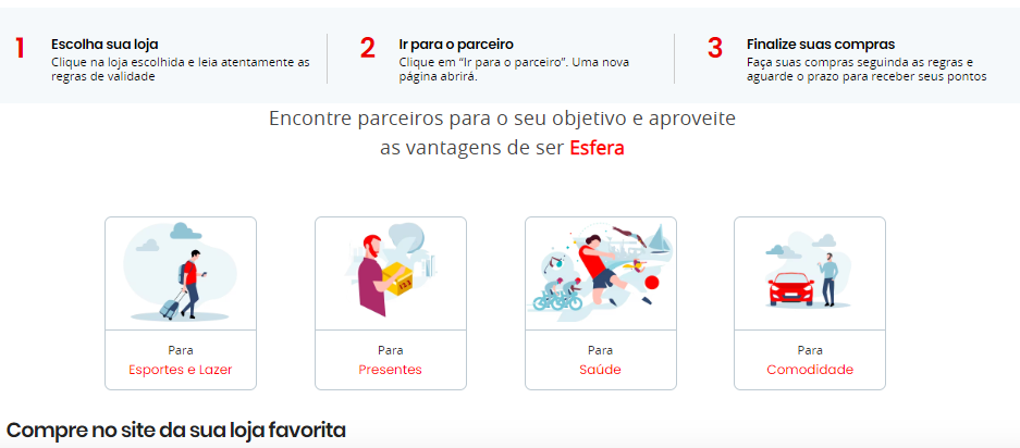 Com uma plataforma completa, a Esfera é uma loja online com possibilidades que vão desde acumular pontos para ganhar descontos em compras do dia a dia, até pacotes completos de viagens para outro país.