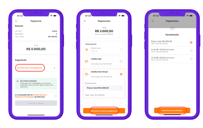 Assim que o valor estiver decidido, basta ir em “Comprar”, depois selecione a forma de pagamento.